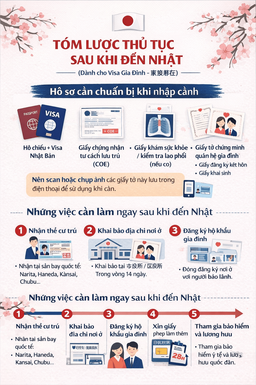 Sau khi nhập cảnh Nhật Bản với visa gia đình, bạn cần hoàn thành các thủ tục sau: